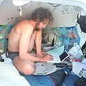 I know Steve from back at home in falmouth but have had the oportunity to get to know him alot better over the last few weeks. I cant decide if he is better to have as your rowing partener or not. If you are not rowing with him you get to see his sleep deprivation antics when you try to wake him or he wakes up early and asks if you are wearing your chicken suit. He is great to be rowing with as he never fails to come up with some interesting topics. I have been rowing with steve for over 2 weeks now and will most likely finish off the row at the oars with him. I have now learn most windsurfing moves and we have covered most topics from my favourite film to if i would prefer to be attacked and eaten by a group of badgers or squirrells!
