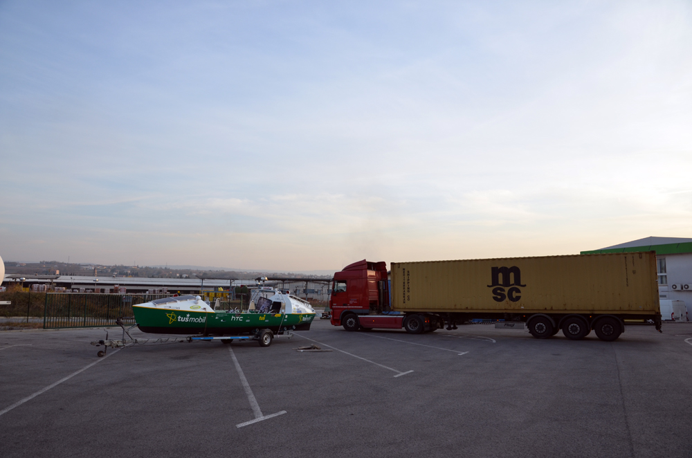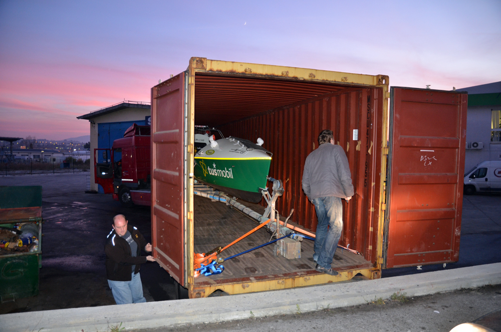 Našo malo barkico smo danes vkrcali v kontejner in v sredo zgodaj zjutraj bo že izplula iz Kopra do Valencie in naprej do Las Palmasa na Kanarskih otokih.