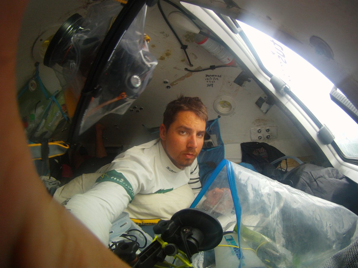 Ponavadi smo dogovorjeni, da tista dva, ki veslata, zbudita tista, ki počivata, 10 minut pred začetkom. Tudi včeraj je bilo tako, da sem kmalu po "10 minutes" zaslišal se prošnjo Simona, naj ga zamenjam čim prej. Pohitel sem in ko sem prišel do njega, mi je z začudenim obrazom povedal, "da sploh ne ve kaj se dogaja." Dogajalo se ni nič čudnega, samo res zmatran je bil :).