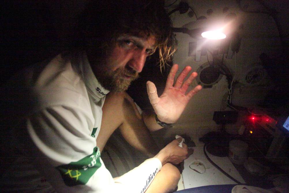 Last night was our windiest night shift with strong squally showers lifting sheets of spray into our faces as it blew us straight to Barbados. We had our biggest distance day of 73Nm due to this helping hand. As a result we are now looking at an earlier arrival of Sunday night. The down side to this added speed is my thumb. We had our last oar gate break during one of the squals and so when Steve came to take over I held the oar out of the water while he tied the oar in place. As we were doing this a wave came and the oar caught the water and thrust my thumb into the slider for the seat and made a real mess of it. Al was promoted to medic as I was in no state to patch it up. He had a vested interest as if he did a good job I could carry on rowing at some point. He used steri strips (sticky strips instead of stiches) and made a very neat job. I have just finished a 2 hour shift after 6 hours off letting it settle and it seems ok to get me to dry land.